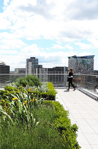 또한 도시의 고층 고밀화로 도심 내 동식물의 서식공간이 사라지는 것을 보완하기 위해 옥상공원을 활용하여 도시생태계 회복과 환경개선 효과를 줄 수 있다는 점도 무시할 수 없다. 한편, 기업 내에서 친환경적인 마케팅 전략이 확산되고 있는 가운데 상업공간 속에 식물의 도입은 이미지 상승뿐만 아니라 경영에도 긍정적인 효과를 줄 수 있다. 상업공간의 경영자는 상업공간에서 시간을 보내는 소비자를 위해 즐겁고 재미있는 분위기를 만드는 것이 마케팅 전략에서 중요하다는 것을 인식하였고 대부분 옥상에 전망대나 정원, 휴게공간을 설치하게 되었다.